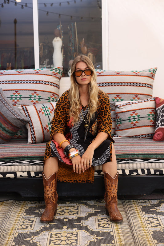 Read moreThis carefully curated explosion of colour, pattern and texture stands out in every design, cherishing age-old textile customs whilst giving the figure supreme comfort, perfect for every day wear. Kaleidoscope by Mimi is not just about fashion, it’s about global bohemia, carefree joie-de-vivre, and pleasure, designed to make you smile and leave a lasting impression.