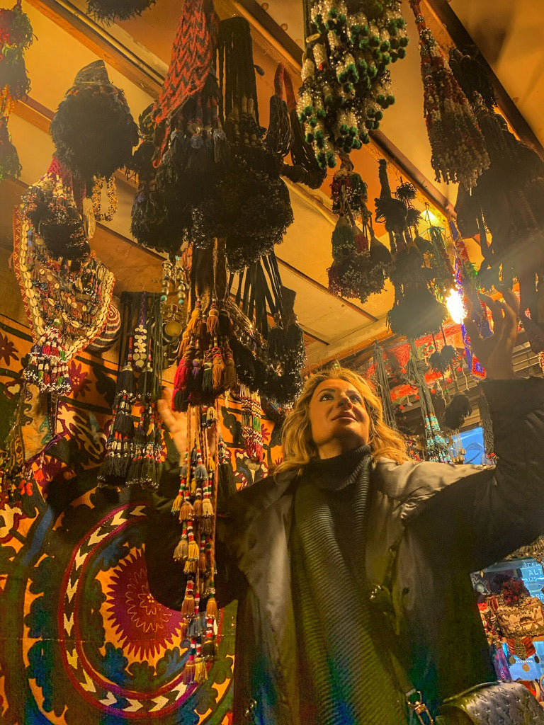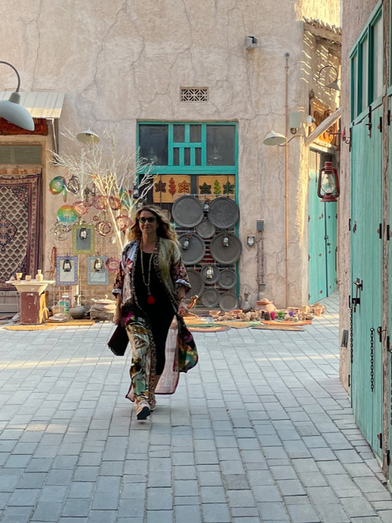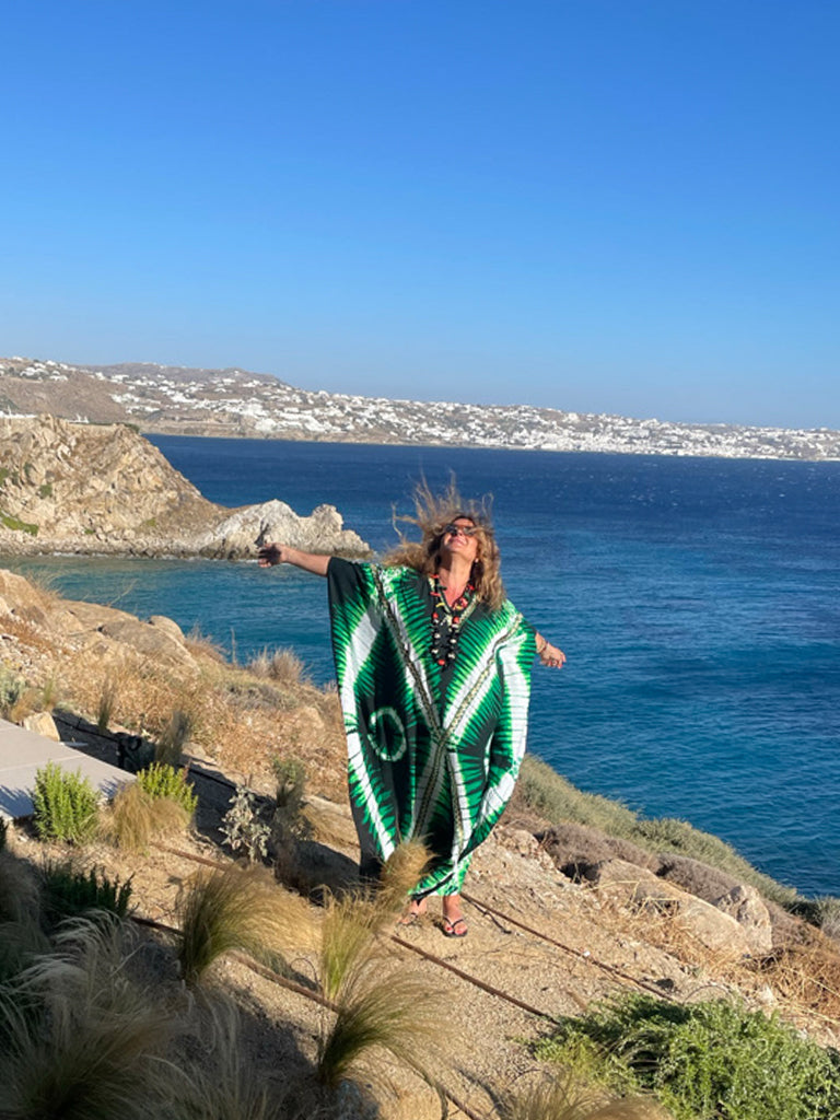 Travel is where I get most of my inspirations. Wandering through souks, seeing different craftsmanship and emotion of the artisans and their traditions. Making conversations with patterns, textures, authentic, raw and organic. From free-spirited street styles of London and New York, to tribal patterns in India and Africa to the movies such as Studio 54, I get my inspiration from everywhere and everyone I see. Mostly inspired by the 70’s and 60s trends through my mom’s photo albums and pictures of her and her friends each wearing such unique style, especially their kaftans, a time where everything seemed to go. The length of the dresses, flowy florals, wildly patterned kaftans, to geometric lines…. each had her own mysterious allure, and the essence of confidence was woven into each and every gown. Kaleidoscope by Mimi is not about fashion– it’s about global style which makes a statement and a lasting impact.